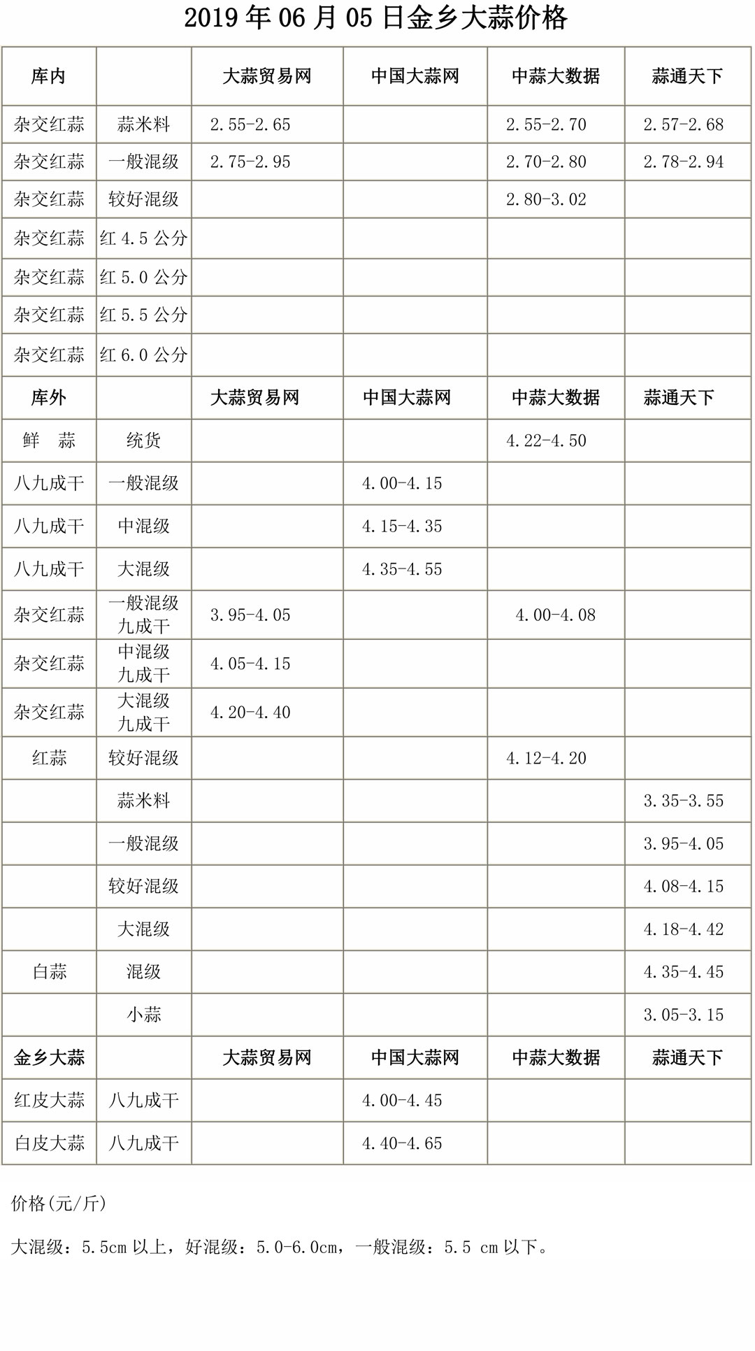 2019年6月05日金鄉(xiāng)大蒜價(jià)格