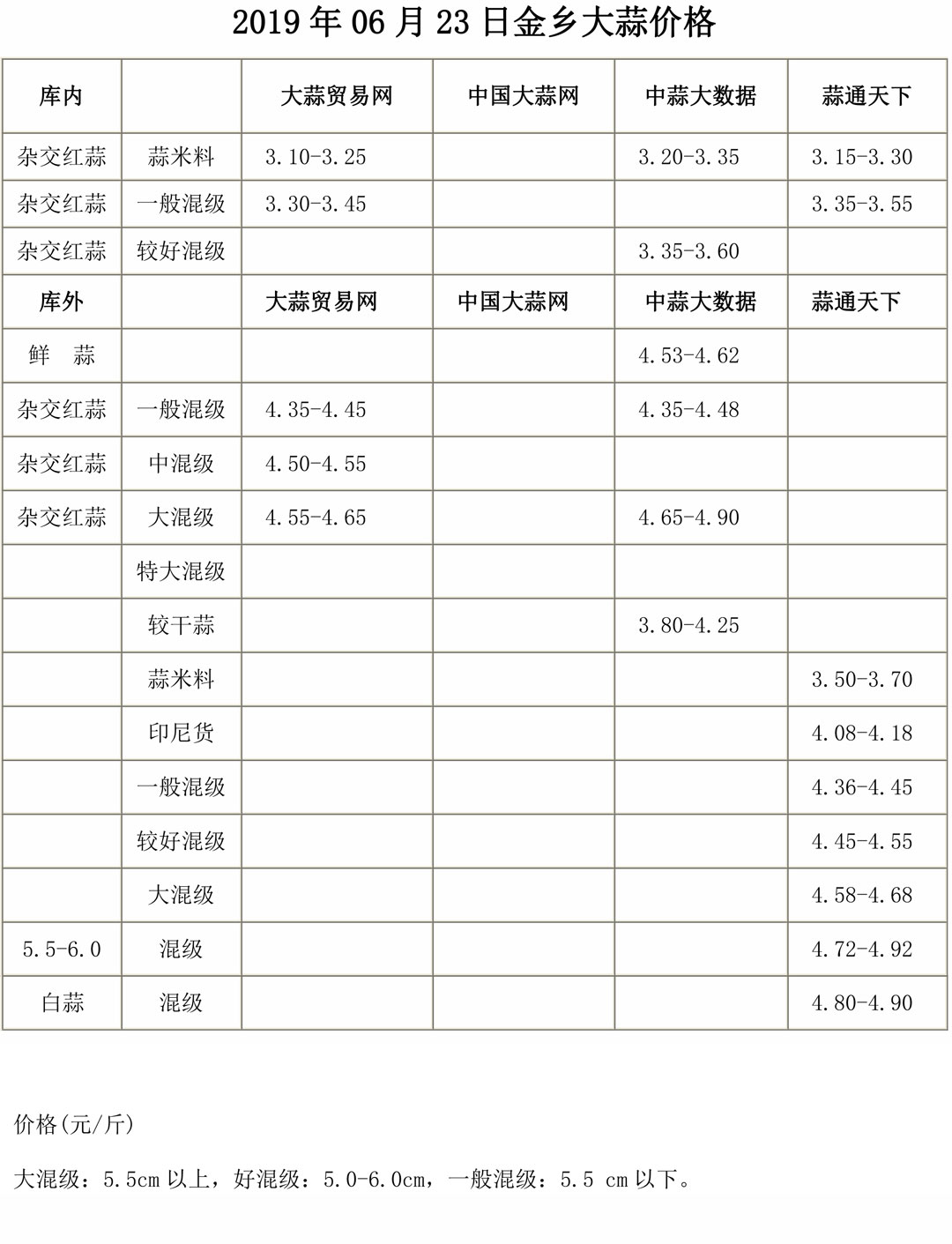 2019年6月23日金鄉(xiāng)大蒜價(jià)格
