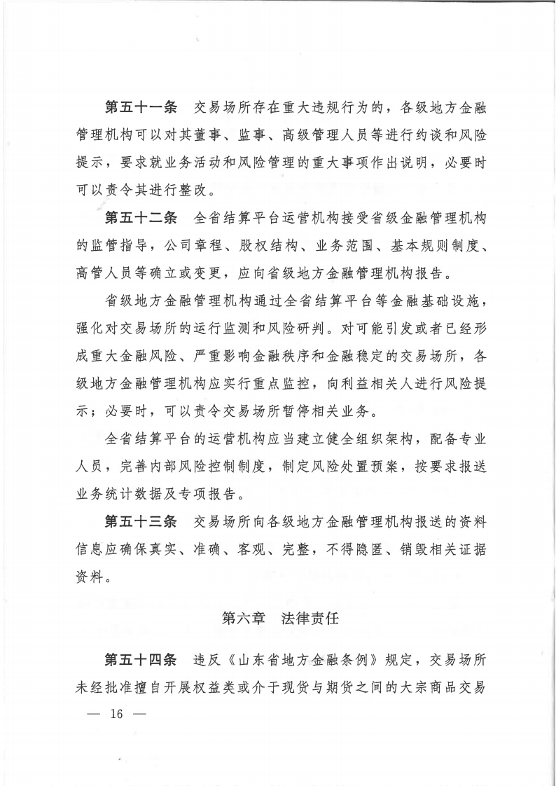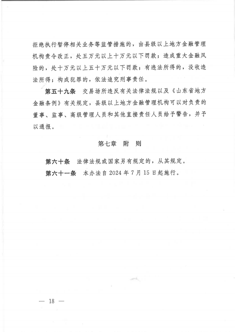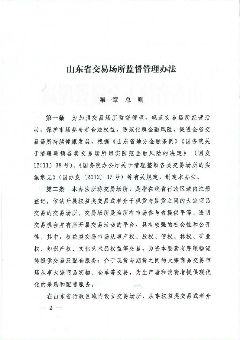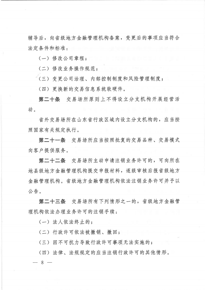 山東省地方金融管理局關于印發(fā)《山東省交易場所監(jiān)督管理辦法》的通知