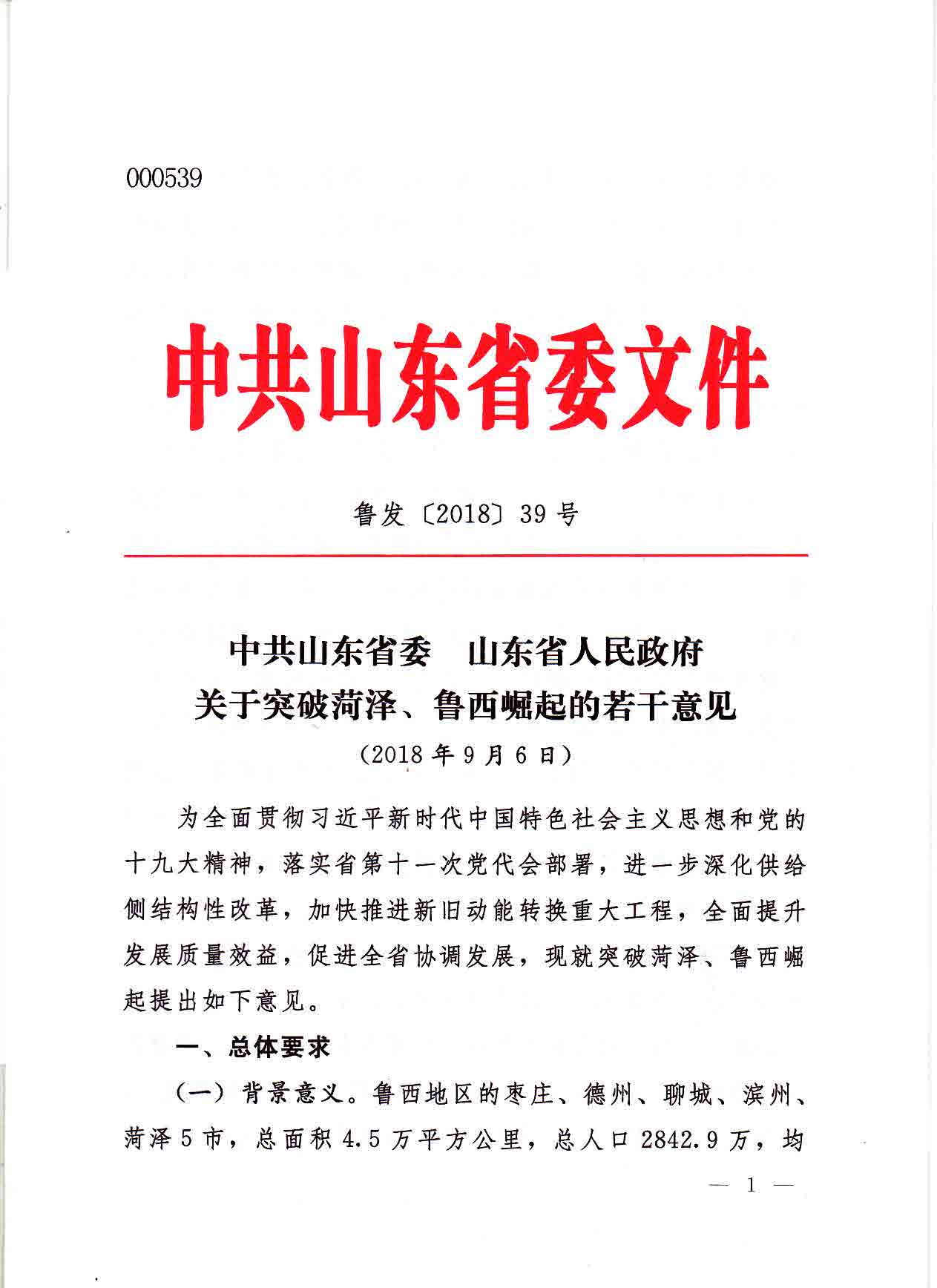 中共山東省委 山東省人民政府關(guān)于突破菏澤、魯西崛起的若干意見