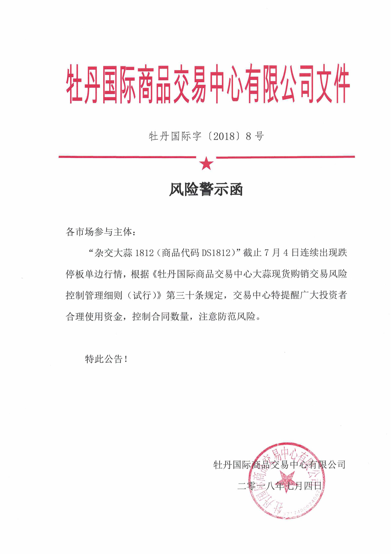 關(guān)于雜交大蒜1812的《風(fēng)險警示函》