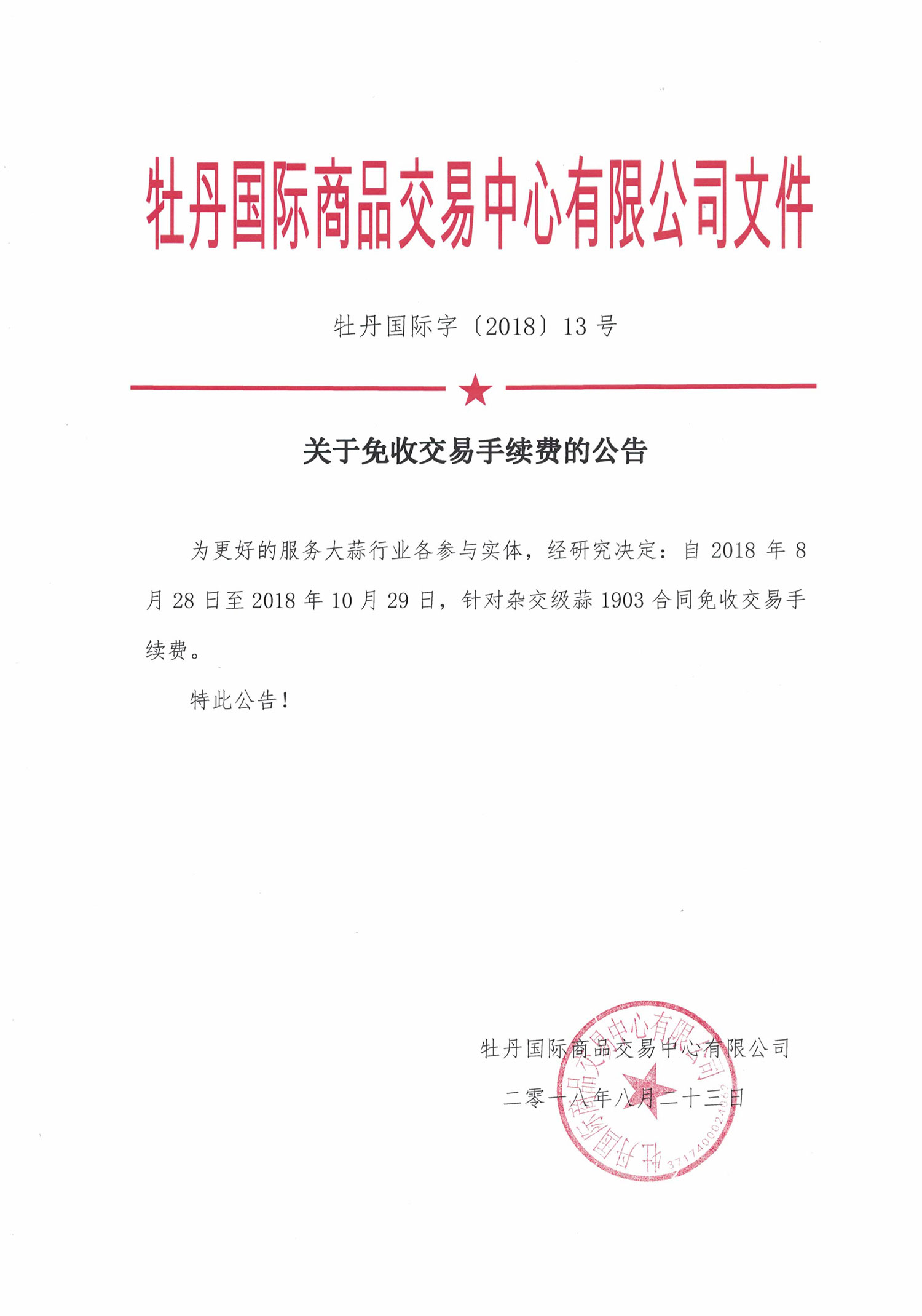 關(guān)于調(diào)整雜交大蒜DS1812商品合同交易訂金的公告