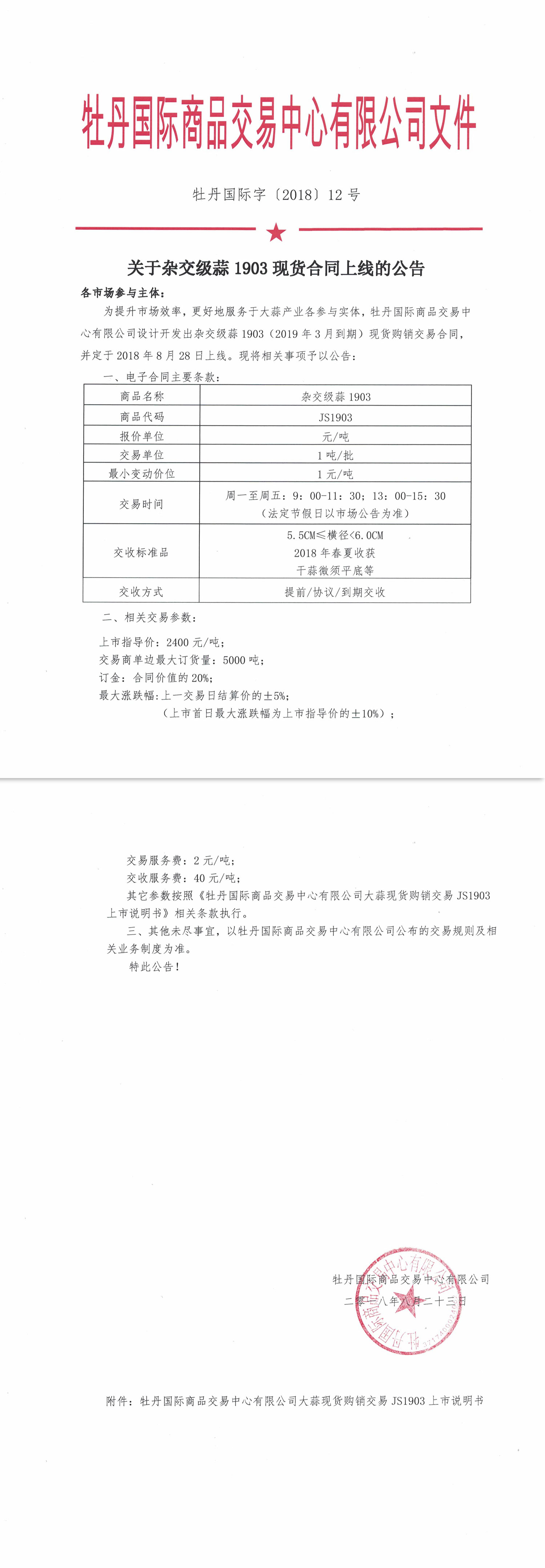 關(guān)于雜交級(jí)蒜1903現(xiàn)貨合同上線(xiàn)的公告