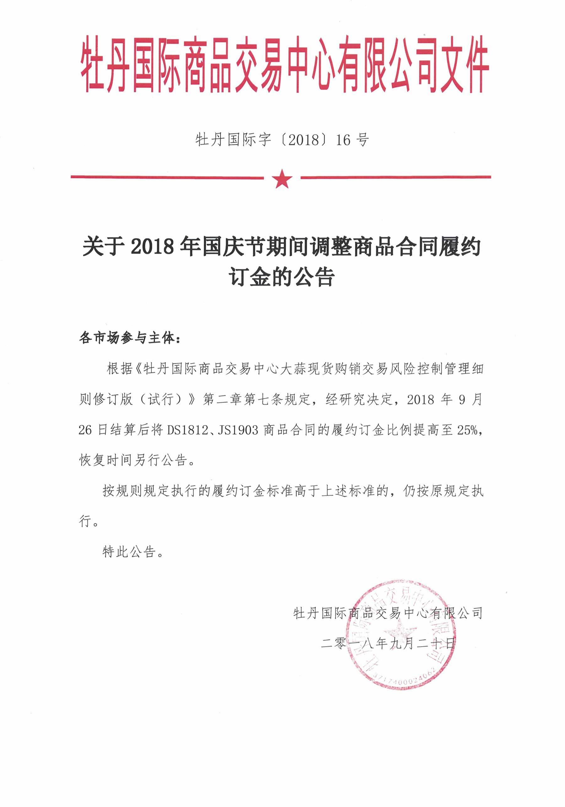 關(guān)于2018年國(guó)慶節(jié)期間調(diào)整商品合同履約訂金的公告