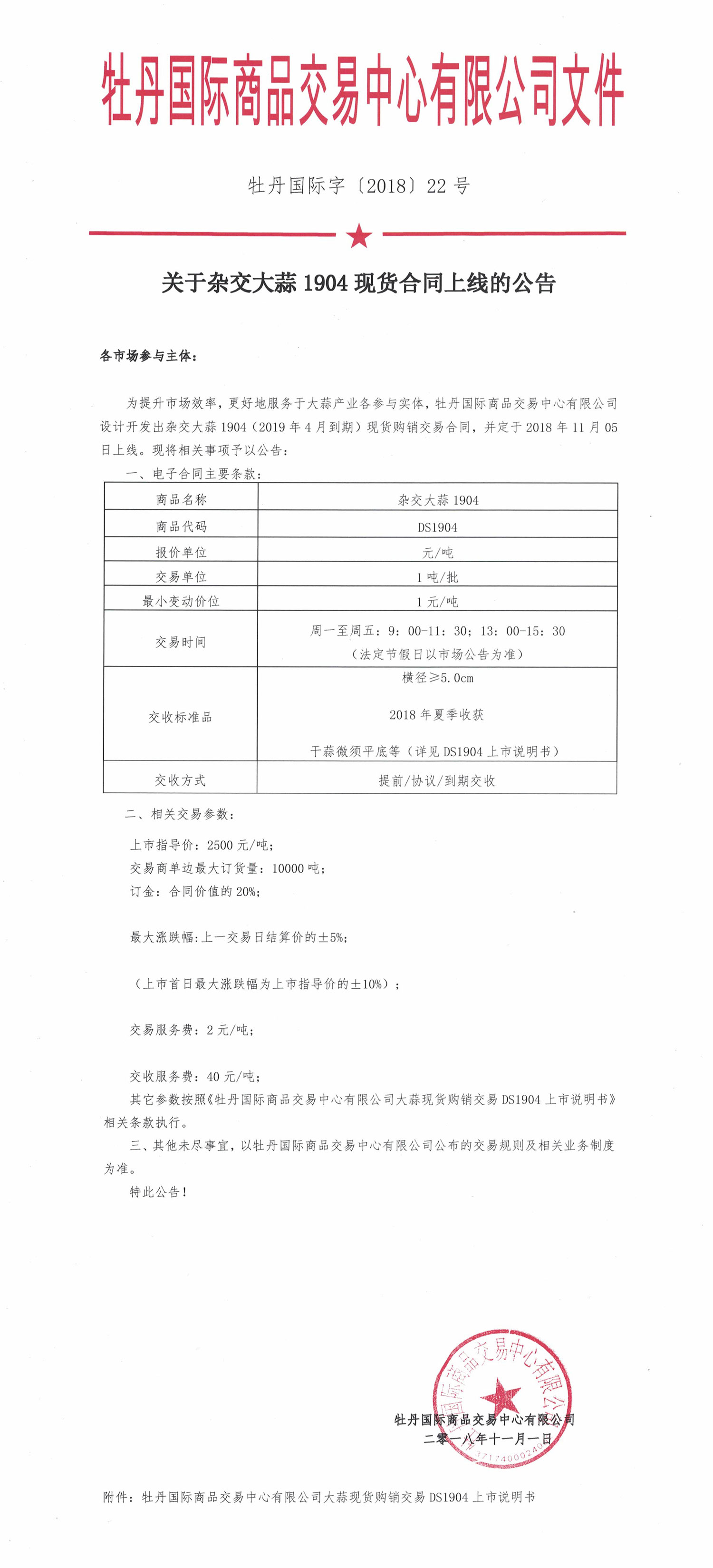 關于雜交大蒜1904現(xiàn)貨合同上線的公告