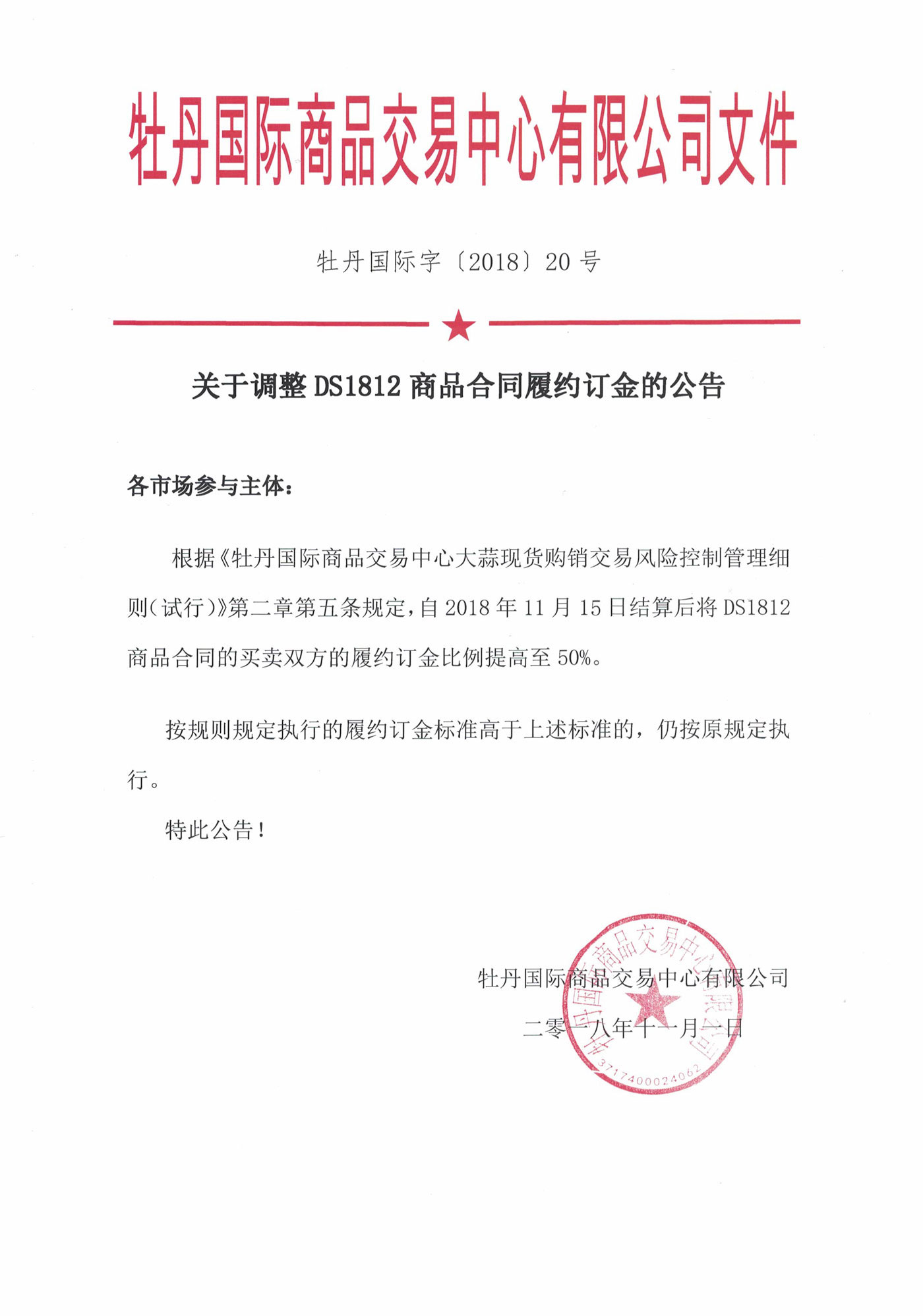 關(guān)于調(diào)整DS1812商品合同履約訂金的公告