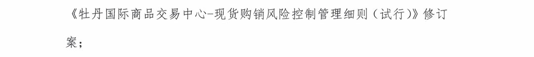 鏈接地址:《牡丹國際商品交易中心—現(xiàn)貨購銷風險控制管理細則(試行)》修訂案