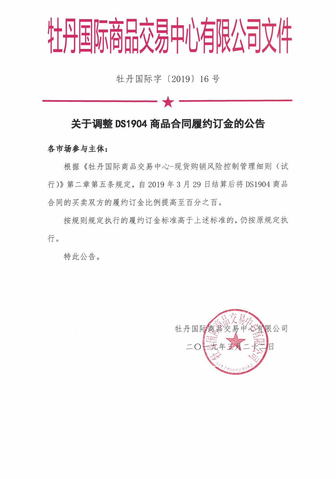 關于發(fā)布《牡丹國際商品交易中心現(xiàn)貨購銷風險控制管理細則(試行)》修訂案的公告