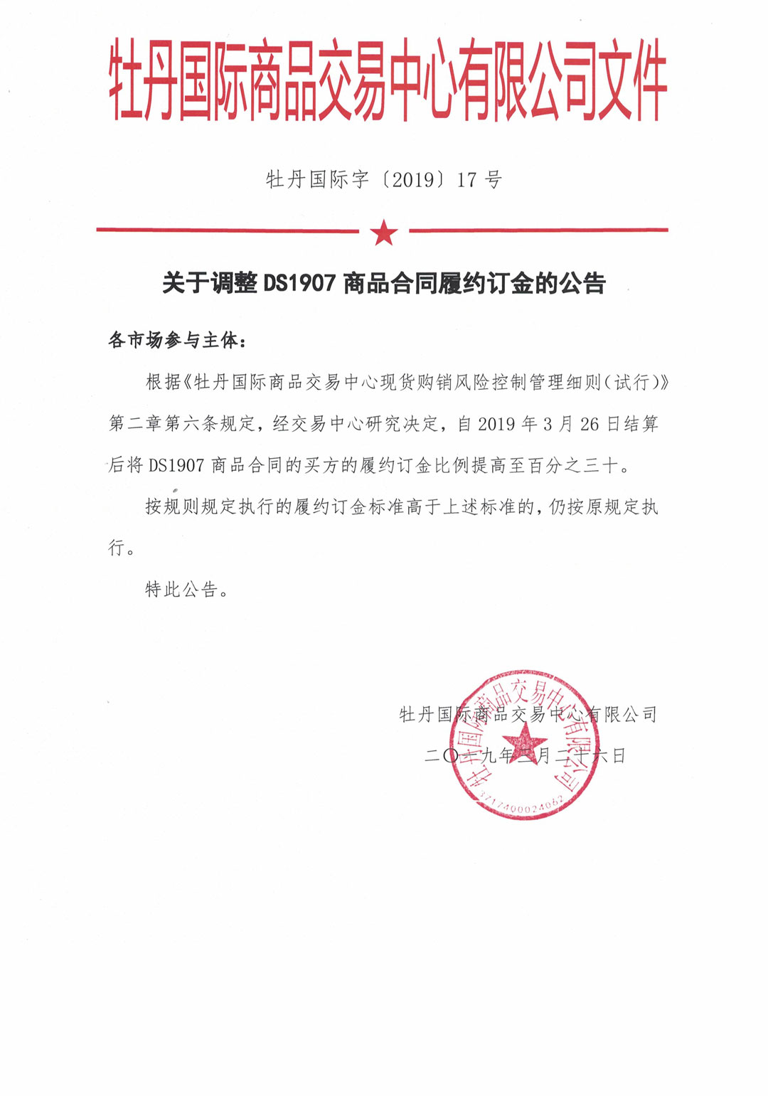 關(guān)于調(diào)整DS1907商品合同履約訂金的公告