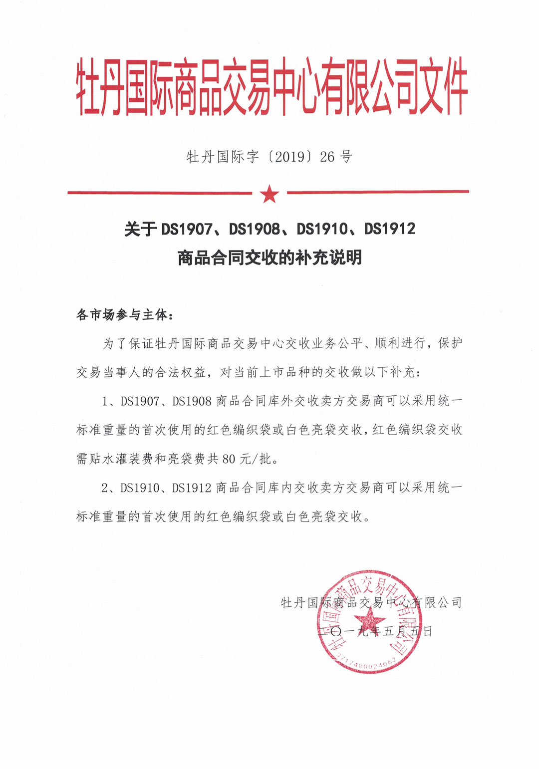 關(guān)于DS1907、DS1908、DS1910、DS1912商品合同交收的補(bǔ)充說(shuō)明