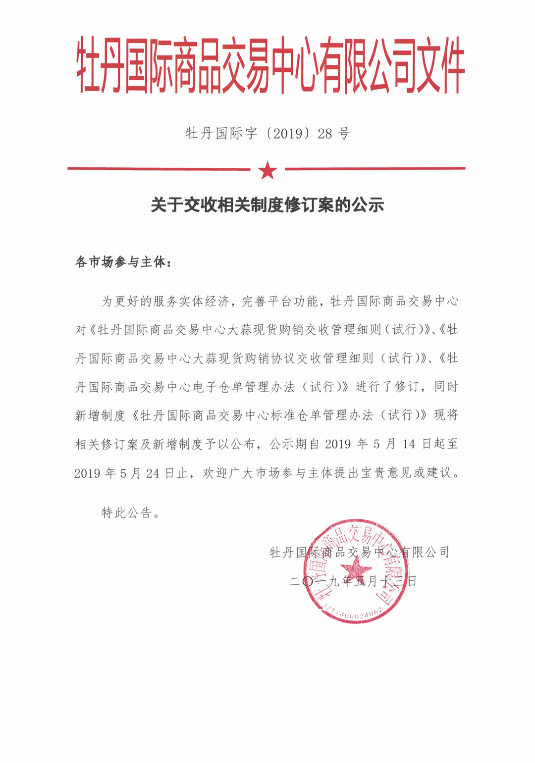 1、牡丹國際商品交易中心大蒜現(xiàn)貨購銷交收管理細(xì)則(試行)修訂案